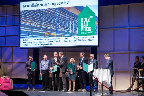 Der Preisregen für den neu gebauten und zu Beginn des heurigen Jahres eröffneten Josefhof geht weiter: Nach mehreren Auszeichnungen – unter anderem mit dem Vorarlberger Holzbaupreis 2019 – kann sich das Architektenteam der BVAEB-Gesundheitseinrichtung über zwei weitere Preise freuen. Das BVAEB-Kompetenzzentrum für Prävention nahe Graz wurde bei der Gala der steirischen Landesinnung Holzbau vergangene Woche in Graz mit dem Holzbaupreis für Gesundheitsbauten 2019 ausgezeichnet. Mit diesem Preis werden Projekte ausgezeichnet, die einen innovativen, hochwertigen und zukunftsweisenden Einsatz von Holz aufweisen.